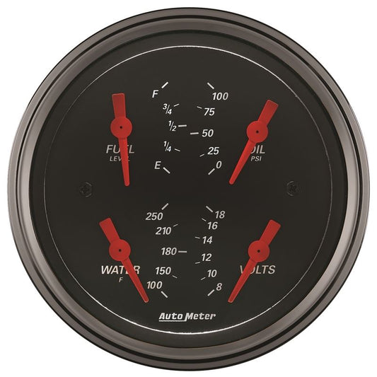 AutoMeter Designer Black 3.375in Quad Gauge - Fuel Level / Oil Pressure / Water Temp. / Voltmeter (1414)