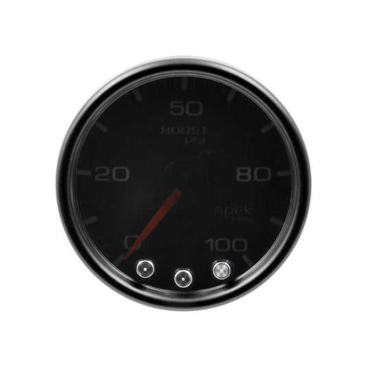 AutoMeter Spek-Pro Gauge Boost 2 1/16in 100psi Stepper Motor W/Peak and Warn Blk/Blk (P305328)