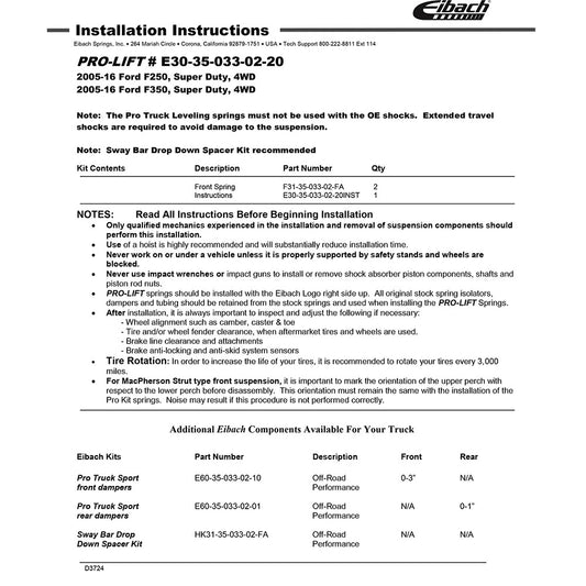 Eibach Front Coil Spring (Pair) for 2005-2016 Ford F-350 Super Duty