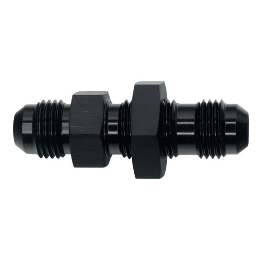 DeatschWerks 6AN Male Flare to 6AN Male Flare Bulkhead Adapter (Incl Nut) - Anodized Matte Black