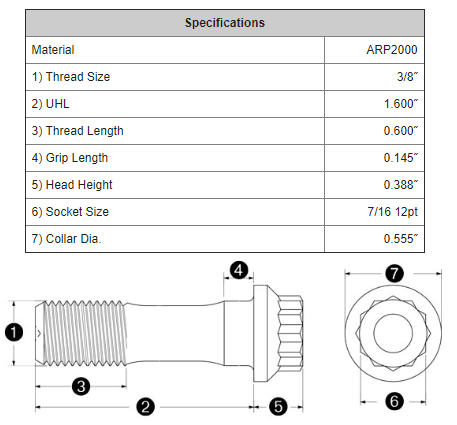 ARP 8-Piece Rod Bolt Kit - 3/8" Thread - 1.6" UHL (200-6209)