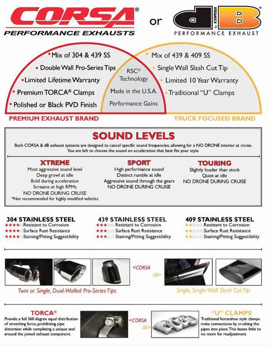 CORSA Sport Sound Level (14315) 2.5 IN Cat-Back Single 4.0 IN Tips 2010-2019 Ford Taurus SHO