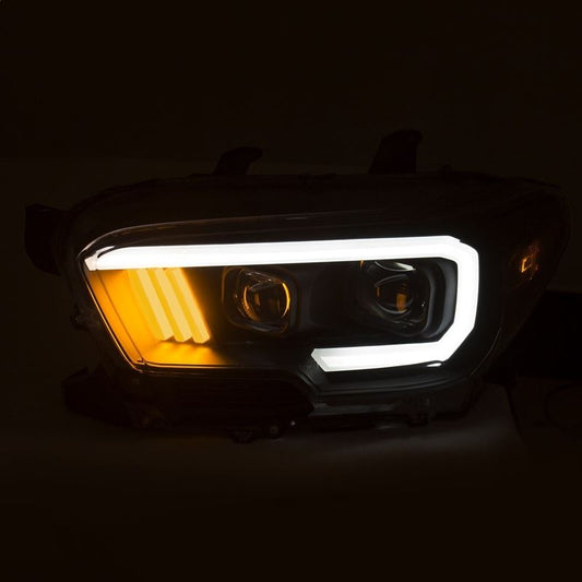 ANZO USA 2016-2017 Toyota Tacoma Projector Headlights w/ Plank Style Switchback Black w/ Amber (111396)