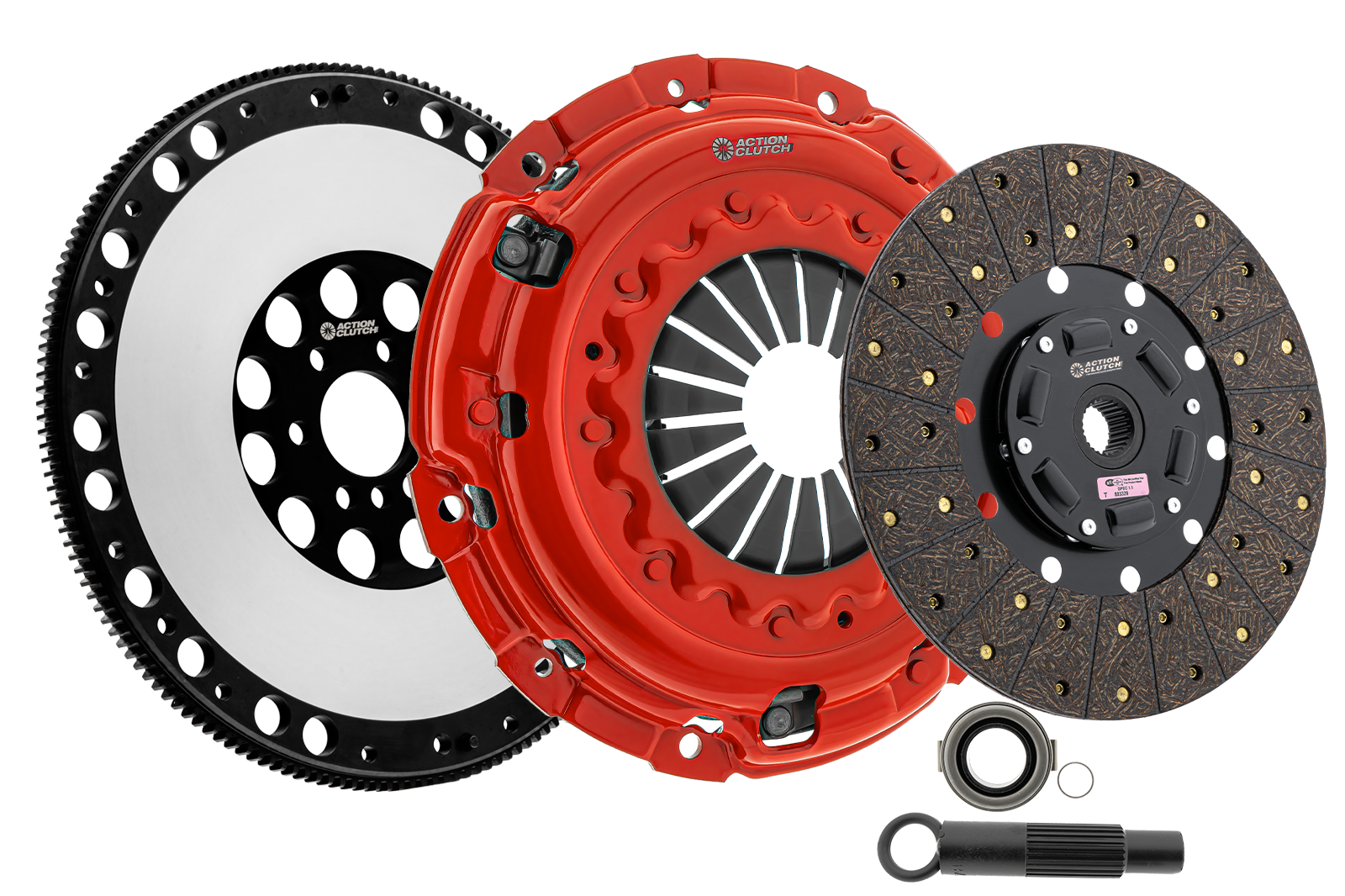 Action Clutch Stage 1 (1OS) Kits have been designed for vehicles ranging from stock to basic bolt-on cars. It utilizes a reinforced Steel Backed Copper Kevlar Organic friction material, coupled with a single diaphragm heavy-duty pressure plate to give you smooth and reliable engagement without sacrificing the OEM-like pedal feel.