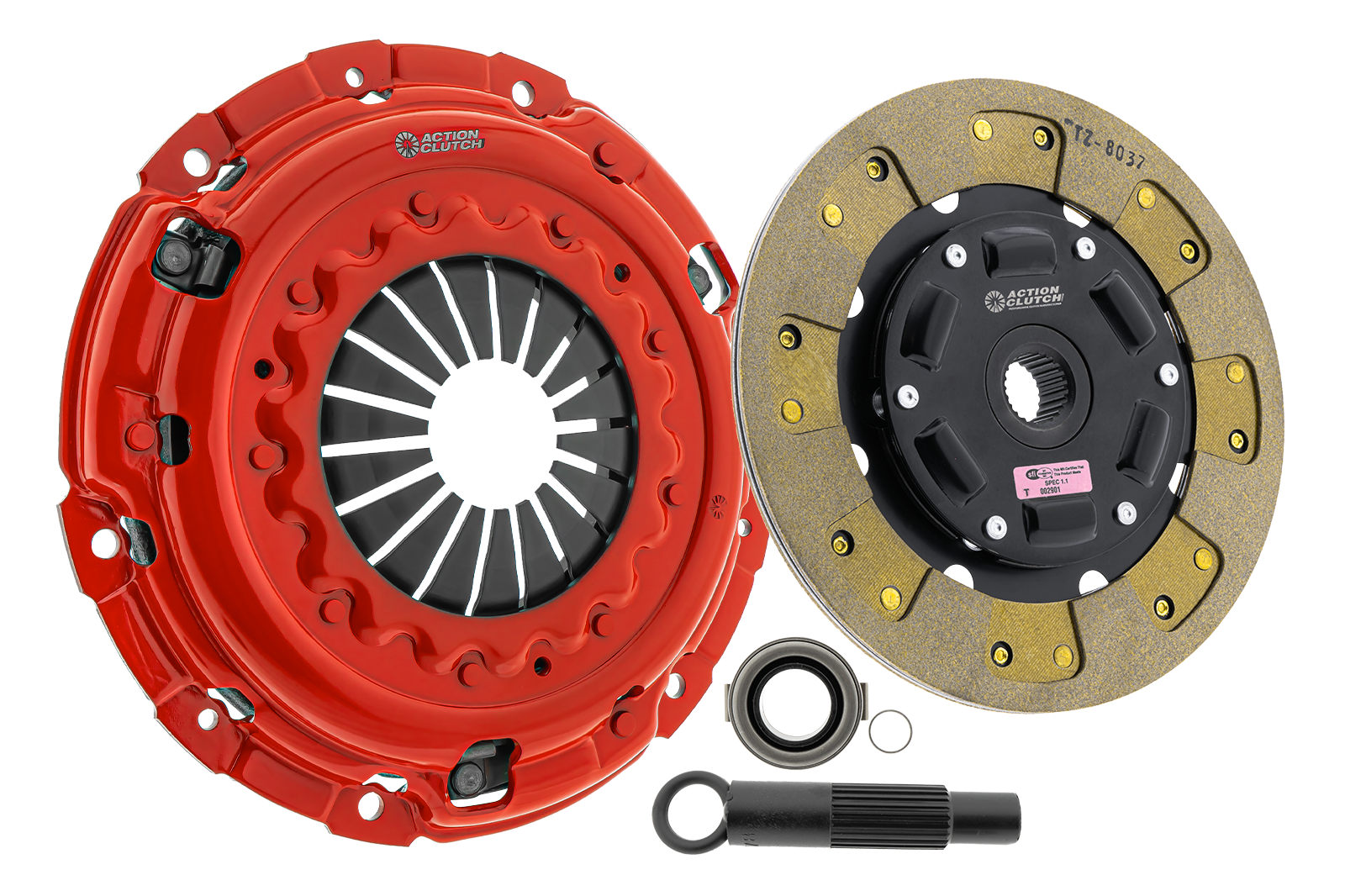 Action Clutch’s Stage 2 (1KS) clutch kit is the ideal choice for peak performance and long-term durability. The kit uses a reinforced Steel-Backed segmented Kevlar® friction material, giving you superior strength that withstands day to day wear and tear. This kit features a single diaphragm heavy-duty pressure plate that provides an OEM-like pedal feel with smooth engagement after proper break in. In addition, the Kevlar® material offers great advantages like extended lifespan, buttery smooth engagement and heat dissipation. Whether you have a basic bolt-on setup or more extensive engine modifications such as cams, this kit will get the job done. This clutch kit is not recommended for drag racing or drifting.