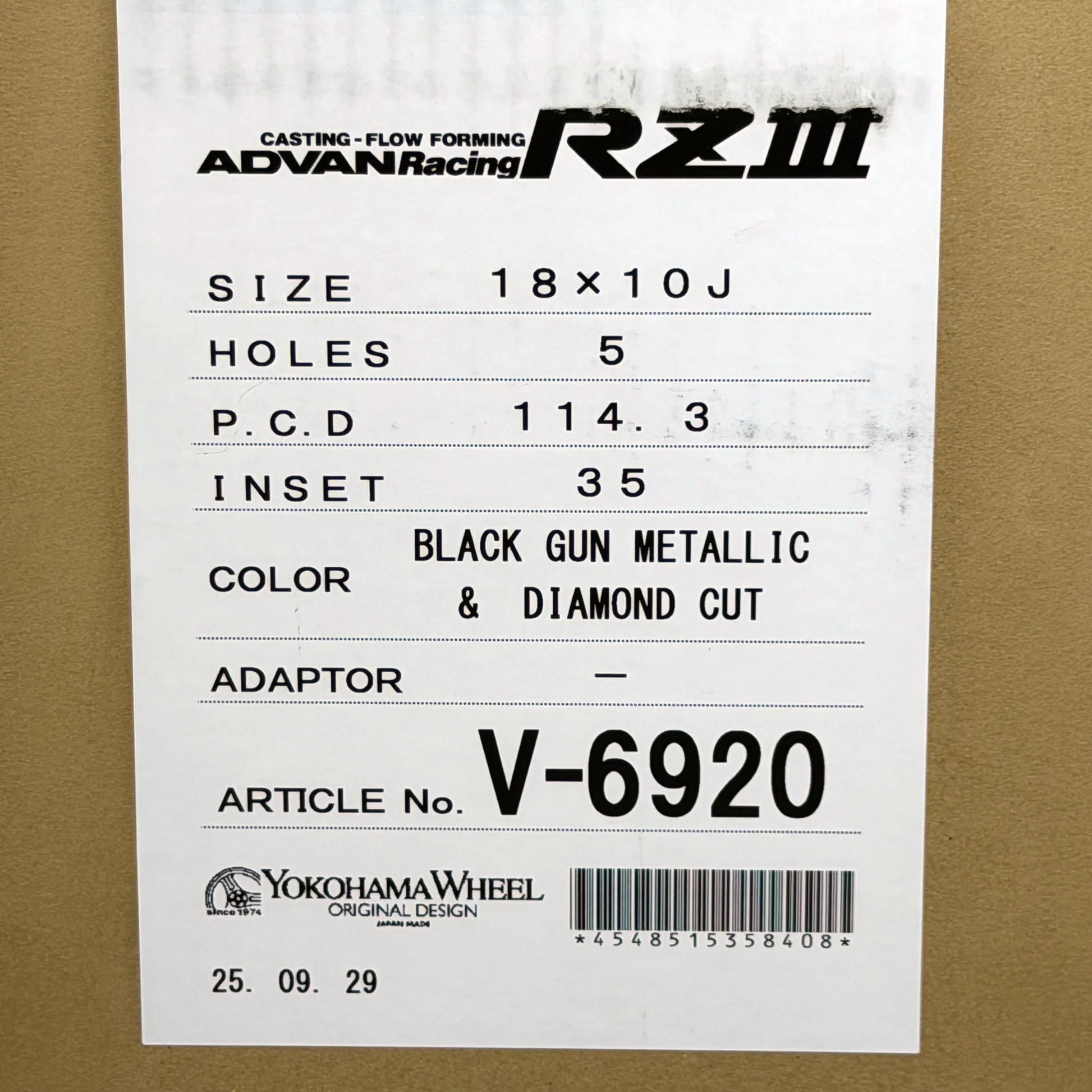 - 4× Advan RZIII wheel (18" × 10" +35)