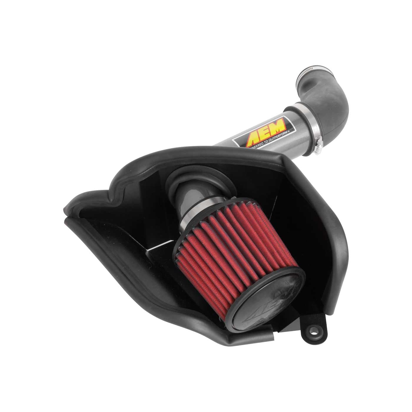 This Performance Cold Air Intake System produces horsepower and torque gains by replacing your vehicle’s restrictive factory air filter and air intake housing. This air intake system was designed, tuned and dyno-tested to fit specific models. Air enters the system through an oversized AEM Dryflow synthetic washable air filter for outstanding air flow, filtration and performance. The air filter is placed into the original air box space and is protected by a heat shield which is designed to reduce intake air temperature and increase horsepower. The air intake tube is constructed from mandrel-bent aluminum featuring a durable gunmetal gray powder coated finish.