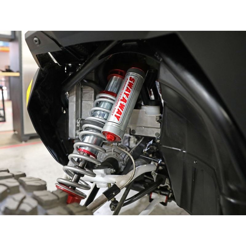 These 2.5" diameter coilovers feature race-winning engineering components that have 20+ years of testing, made into a specifically designed kit that will bolt directly onto your side-by-side. This kit offers adjustable ride height and Sway-A-Way's new Mid-Speed Compression Adjusters for superior off-road damping curves without sacrificing any off-road comfort or handling. These coilovers are 100% designed and built in the USA and feature bright zinc plated steel cylinder bodies and CNC machined aluminum components. The kit comes pre-set for original ride height and damping while also including a spanner wrench to change spring pre-load and spring crossover stop nuts to allow for fine tuning. Whether you are riding dunes, racing, or blasting across the desert, these coilovers allow you to find your ideal setup for the given conditions. This package is designed as a direct fit application and requires no modifications to the vehicle. Sway-A-Way's new 2.5 Series Mid-Speed Compression Adjusters mount directly into the piggyback attachment. Offering 16 clicks of resolution, the compression adjuster can go from the unrestricted, fully open (soft) position, to the fully closed (hard) position - offering up to a 200% increase in damping force, in just two full turns of the GF polymer adjuster knob. Rebound damping will remain unaffected regardless of the setting and valving combination chosen. Constructed from billet 6061-T6 aluminum, the red anodized and laser etched housing is built to withstand the harshest of environments with excellent corrosion resistance. The metering piston is CNC machined from 7075-T6 aluminum to provide the best service life for high speed applications. Sway-A-Way's mid-speed compression adjusters are an excellent solution for any application that varies weight often, or that might be used in a variety of terrains where a quick adjustment is desired for optimizing the comfort level of your ride.