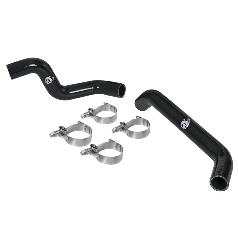 - Gloss black silicone hoses are finished with aFe Power logo for a custom look