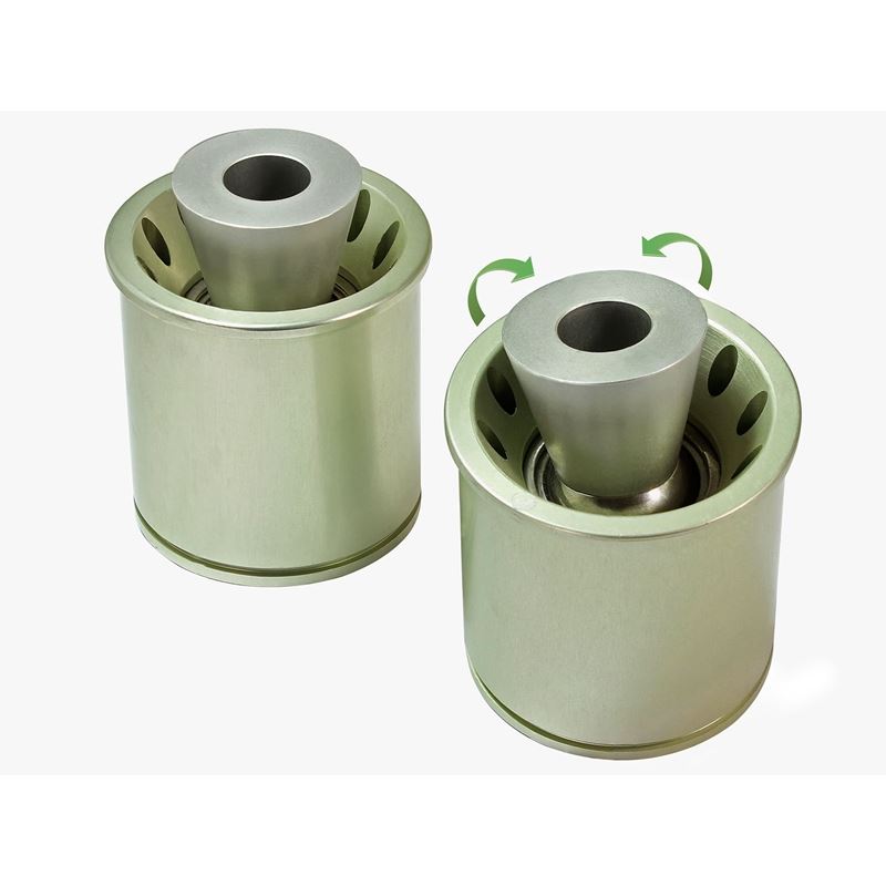 PFADT Series 18 Control Arm Bearings (460-401003-A) by aFe. Includes: 18 Control Arm Bushings with Mono-Ball Spherical Joints, Aluminum Bearing Housings, Stainless Steel Shafts. aFe Control is proud to release the PFADT Series Solid Spherical Control Arm Bearing Set. OE factory bushings are known to deflect more than a inch in turns which equates to almost 1 degree of lost camber and unpredictable handling. Serious racers finally have an engineered solution for solid spherical control arm bearings.