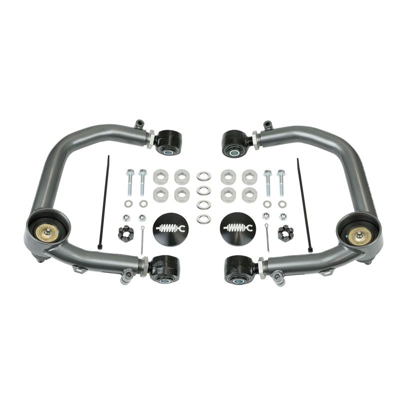 On-Truck Adjustment:For ease of aligning, our control arms are equipped with double adjusters that allow for on-truck camber/caster adjustment. Simply loosen the pinch bolts and spin the adjusters in or out to achieve your desired alignment specs.