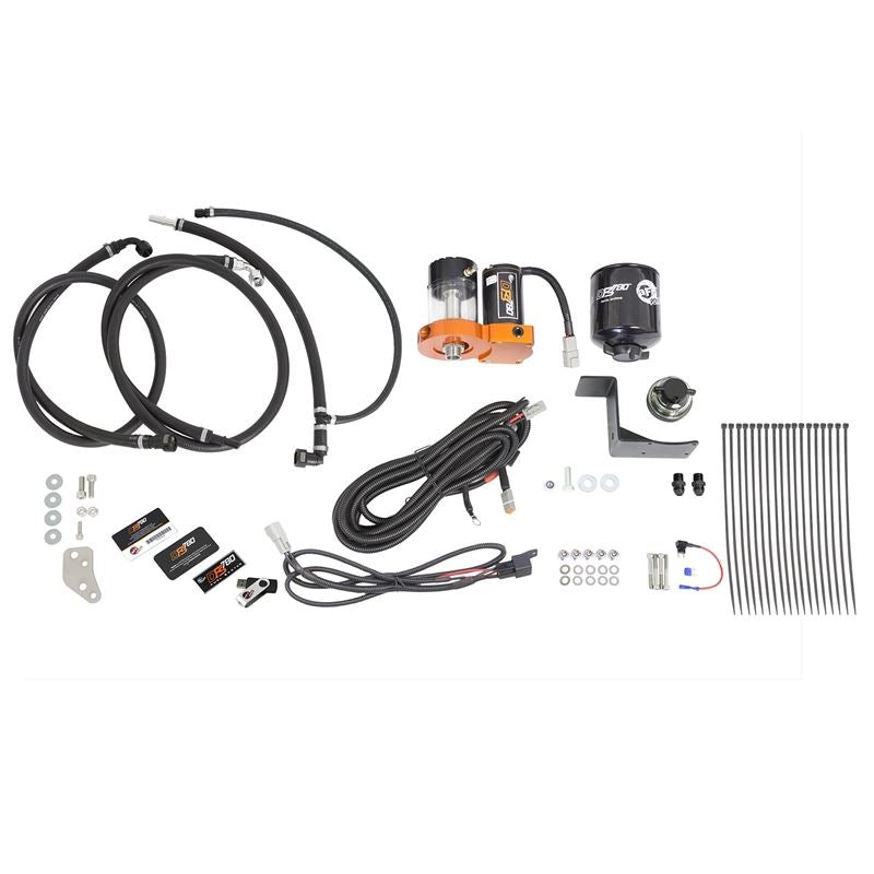Full-Time Diesel Fuel System (42-13041) by aFe. The diesel fuel in your truck contains contaminants, water and air/vapor which is reducing power and damaging your diesel fuel injectors. Introducing the aFe POWER DFS780 Diesel Fuel System, with its patent-pending design capable of removing power-robbing entrained air, water and contaminants. The DFS780 also boosts fuel pressure ensuring constant availability for the high-pressure transfer pump, improving throttle response and horsepower at all RPMs. The DFS780 was designed from the beginning to eliminate weaknesses found in other "fuel transfer" system. aFe has spent almost four years engineering what we feel is the best, most reliable system available. Depending on the specific application, we offer features such as boost-activated fuel flow increase, a high-impact polycarbonate "sight glass" to visually check fuel conditions, a reliable "marine grade" motor and Viton seals to name a few.