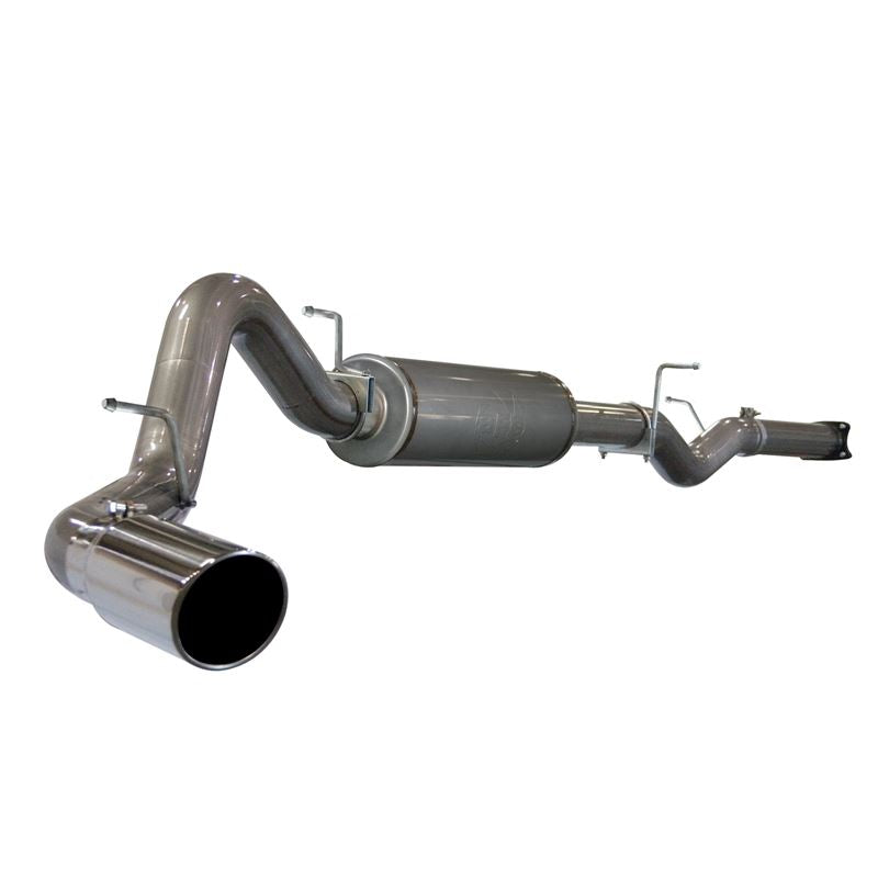 Mach Force XP 409 SS Cat-Back Exhaust System with Single Side Exit by aFe. With Muffler Delete Pipe. Exhaust System Type: Cat-Back. Exhaust Tubing Material: 409 SS. Main Tubing Diameter: 4". Exhaust System Sound: Aggressive / Loud. Get increased exhaust flow, more horsepower and torque, improved performance and lower exhaust gas temperatures with the aFe Mach Force XP Cat-Back Exhaust System. aFe dyno tests every system for maximum gains, and constructs them from mandrel-bent stainless steel for maximum flow and long-lasting durability. This system begins at the Cat (Catalytic Converter).