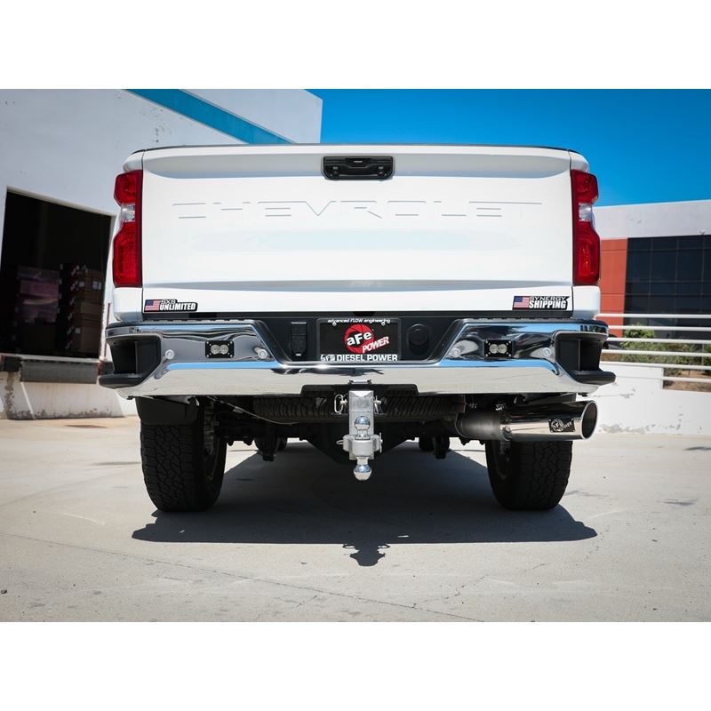 This DPF-back exhaust system is constructed of 5" mandrel-bent 409 stainless steel tubing for maximum strength and durability. Finishing off this exhaust system is a 6" diameter polished 304 stainless steel intercooled clamp-on exhaust tip. The tip features an aFe POWER logo plate riveted on for a unique style. Some cutting may be required, see instruction sheet for further information. Utilizing factory style hangers this system mounts directly to factory mounting locations for a hassle-free installation. Utilizing state-of-the-art computer-aided design technology, this exhaust system is designed for custom, high tolerance factory fitment. 100% MIG-Welded for race-proven strength and durability. This system fits: Double Cab / Short-Bed - 149.4" Wheelbase, Crew Cab / Short-Bed - 158.9" Wheelbase, Double Cab / Long-Bed - 162.4" Wheelbase, Crew Cab / Long-Bed - 172" Wheelbase