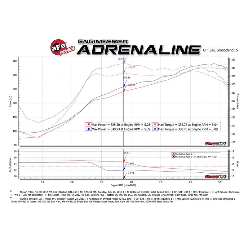 aFe tests its systems on the flow bench and the dynamometer to determine the right pipe size and muffler construction. Then they mandrel bend the pipes to ensure they maintain their shape and size throughout the entire length, to provide smooth, unrestricted airflow. Tubes that are not mandrel bent can lose up to 20% of their diameter in sharp bends. Some systems also include a straight muffler delete pipe if a more aggressive sound and maximum flow is desired. A typical aFe system will increase exhaust flow by up to 29% and lower EGT (Exhaust Gas Temperature) by up to 100 , with a corresponding improvement in power and performance.