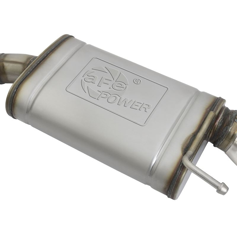 Mach Force XP 409 SS Axle-Back Exhaust System with Split Rear Exit (49-43085-P) by aFe. Exhaust System Type: Axle-Back. Exhaust Tubing Material: 409 SS. Main Tubing Diameter: 2.5". Exhaust System Sound: Aggressive / Loud. Get increased exhaust flow, more horsepower and torque, improved performance and lower exhaust gas temperatures with the aFe Mach Force XP Axle-Back Exhaust System. aFe dyno tests every system for maximum gains, and constructs them from mandrel-bent stainless steel for maximum flow and long-lasting durability.