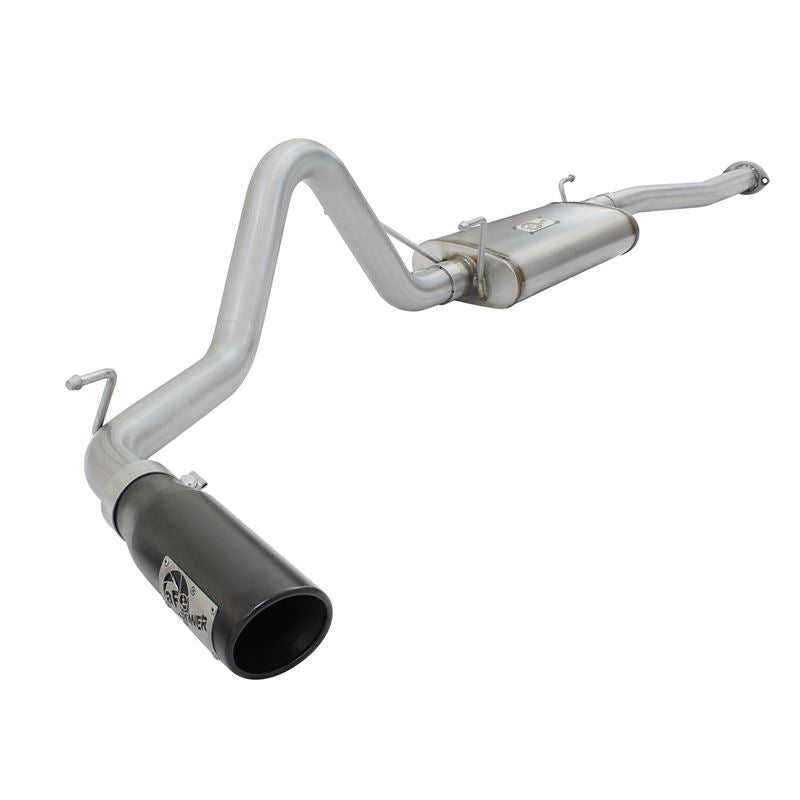 Mach Force XP 409 SS Cat-Back Exhaust System with Single Side Exit (49-46024-B) by aFe. Exhaust System Type: Cat-Back. Exhaust Tubing Material: 409 SS. Main Tubing Diameter: 2.5". Exhaust System Sound: Aggressive / Loud. Get increased exhaust flow, more horsepower and torque, improved performance and lower exhaust gas temperatures with the aFe Mach Force XP Cat-Back Exhaust System. aFe dyno tests every system for maximum gains, and constructs them from mandrel-bent stainless steel for maximum flow and long-lasting durability. This system begins at the Cat (Catalytic Converter).