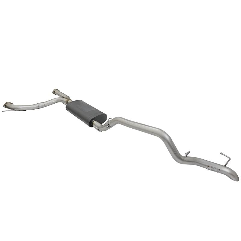 Mach Force XP 304 SS Hi-Tuck Cat-Back Exhaust System with Single Rear Exit by aFe. Max gains +13 HP / +15 lbs. x ft. of Torque. Exhaust System Type: Cat-Back. Exhaust Tubing Material: 304 SS. Main Tubing Diameter: 3". Exhaust System Sound: Aggressive / Loud. Get increased exhaust flow, more horsepower and torque, improved performance and lower exhaust gas temperatures with the aFe Mach Force XP Cat-Back Exhaust System. aFe dyno tests every system for maximum gains, and constructs them from mandrel-bent stainless steel for maximum flow and long-lasting durability. This system begins at the Cat (Catalytic Converter).