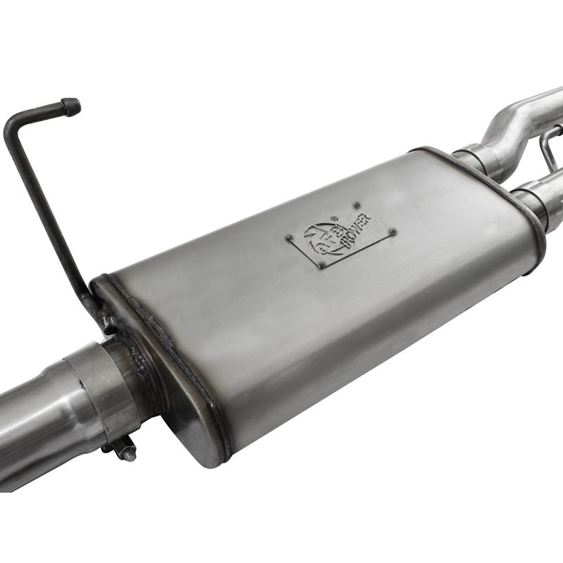 Mach Force XP 409 SS Hi-Tuck Cat-Back Exhaust System with Single Rear Exit (49-46104) by aFe. Exhaust System Type: Cat-Back. Exhaust Tubing Material: 409 SS. Main Tubing Diameter: 3". Exhaust System Sound: Aggressive / Loud. Get increased exhaust flow, more horsepower and torque, improved performance and lower exhaust gas temperatures with the aFe Mach Force XP Cat-Back Exhaust System. aFe dyno tests every system for maximum gains, and constructs them from mandrel-bent stainless steel for maximum flow and long-lasting durability. This system begins at the Cat (Catalytic Converter).
