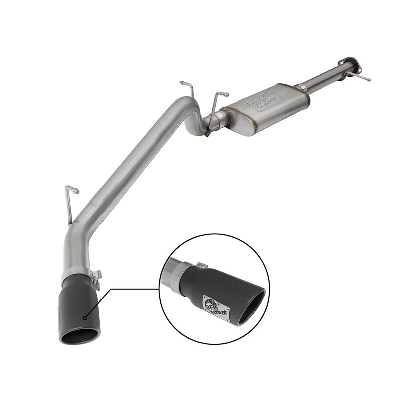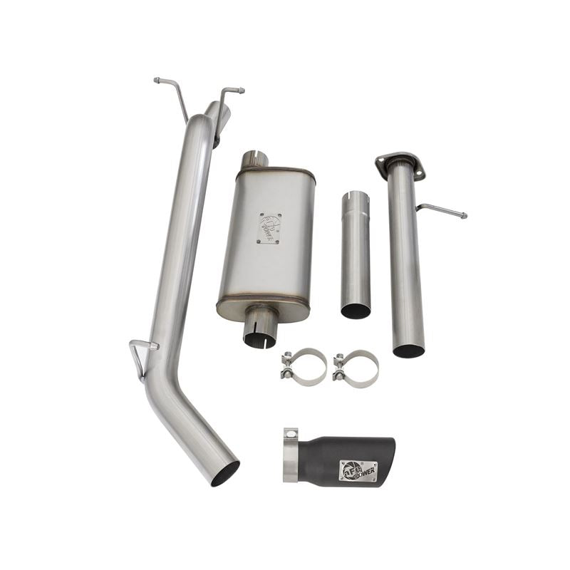 Mach Force XP 409 SS Cat-Back Exhaust System with Single Side Exit (49-44058-B) by aFe. Exhaust System Type: Cat-Back. Exhaust Tubing Material: 409 SS. Main Tubing Diameter: 3". Exhaust System Sound: Aggressive / Loud. Get increased exhaust flow, more horsepower and torque, improved performance and lower exhaust gas temperatures with the aFe Mach Force XP Cat-Back Exhaust System. aFe dyno tests every system for maximum gains, and constructs them from mandrel-bent stainless steel for maximum flow and long-lasting durability. This system begins at the Cat (Catalytic Converter).