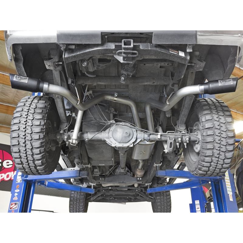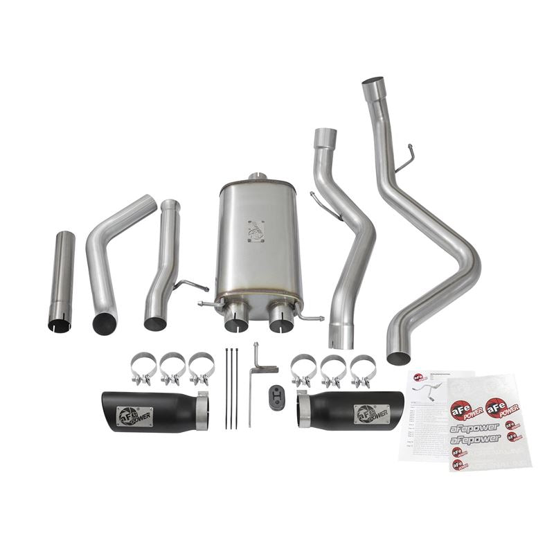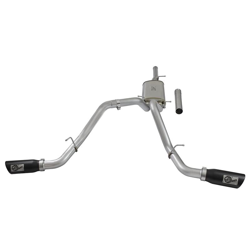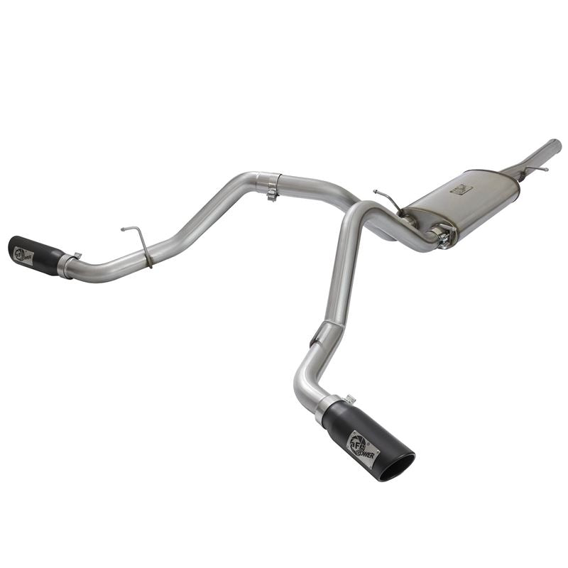 Mach Force XP 409 SS Cat-Back Exhaust System with Split Side Exit (49-44071-B) by aFe. Exhaust System Type: Cat-Back. Exhaust Tubing Material: 409 SS. Main Tubing Diameter: 3". Exhaust System Sound: Aggressive / Loud. Get increased exhaust flow, more horsepower and torque, improved performance and lower exhaust gas temperatures with the aFe Mach Force XP Cat-Back Exhaust System. aFe dyno tests every system for maximum gains, and constructs them from mandrel-bent stainless steel for maximum flow and long-lasting durability. This system begins at the Cat (Catalytic Converter).