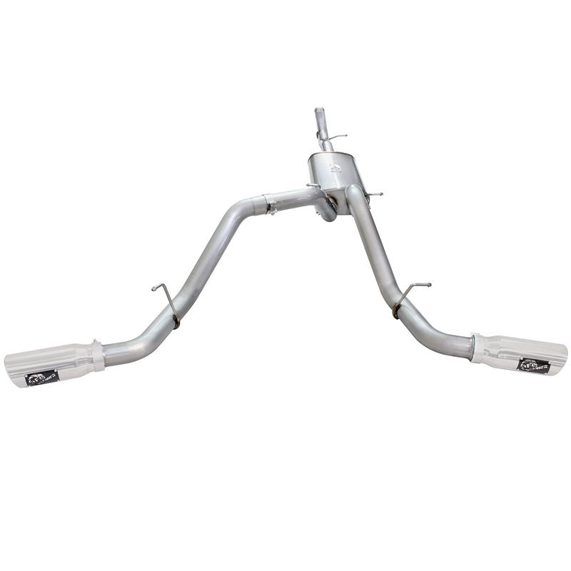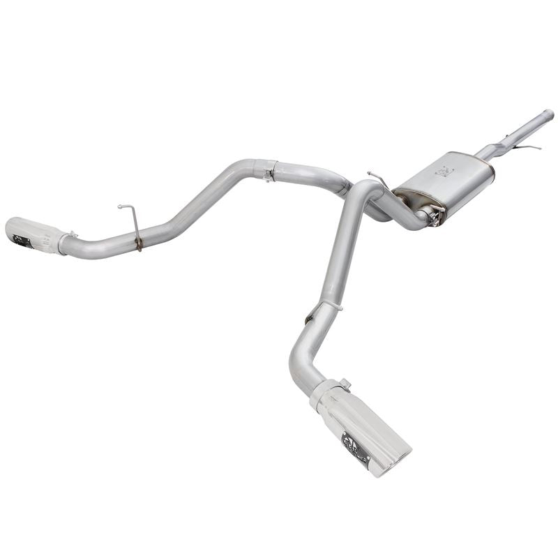 Mach Force XP 409 SS Cat-Back Exhaust System with Split Side Exit (49-44057-P) by aFe. Exhaust System Type: Cat-Back. Exhaust Tubing Material: 409 SS. Main Tubing Diameter: 3". Exhaust System Sound: Aggressive / Loud. Get increased exhaust flow, more horsepower and torque, improved performance and lower exhaust gas temperatures with the aFe Mach Force XP Cat-Back Exhaust System. aFe dyno tests every system for maximum gains, and constructs them from mandrel-bent stainless steel for maximum flow and long-lasting durability. This system begins at the Cat (Catalytic Converter).