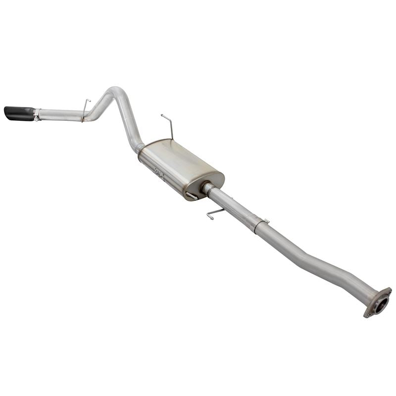 Mach Force XP 409 SS Cat-Back Exhaust System with Single Side Exit (49-43068-B) by aFe. Exhaust System Type: Cat-Back. Exhaust Tubing Material: 409 SS. Main Tubing Diameter: 3" to 3.5". Exhaust System Sound: Aggressive / Loud. Get increased exhaust flow, more horsepower and torque, improved performance and lower exhaust gas temperatures with the aFe Mach Force XP Cat-Back Exhaust System. aFe dyno tests every system for maximum gains, and constructs them from mandrel-bent stainless steel for maximum flow and long-lasting durability. This system begins at the Cat (Catalytic Converter).