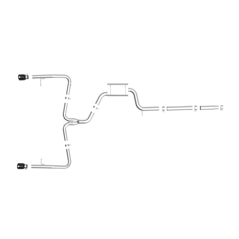 This cat-back exhaust system is constructed of 3" - 2-1/2" mandrel-bent 304 stainless steel tubing for maximum strength and durability. This system features a high-flow 304 stainless steel muffler, producing a smooth sound. Finishing off this exhaust system are dual 4" diameter black 304 stainless steel clamp-on exhaust tips. The tips feature a laser etched aFe POWER logo for a unique style. This system produces a smooth sound unleashing all available horsepower and torque. This system is compatible with PN 49M10001 resonator. Utilizing factory style hangers this system is a direct bolt-on system, which requires no cutting or modifications for a hassle-free installation. Utilizing state-of-the-art computer-aided design technology, this exhaust system is designed for custom, high tolerance factory fitment. 100% MIG-Welded for race-proven strength and durability.