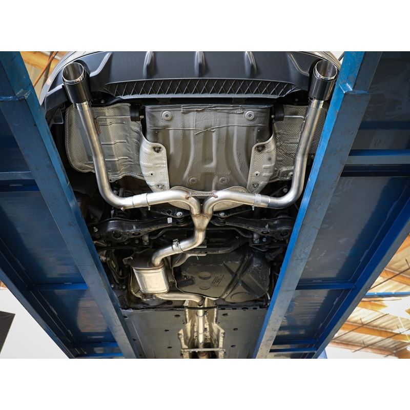 Dual 4" Diameter Polished Exhaust Tips:Finishing off this exhaust system are dual 4" diameter polished 304 stainless steel clamp-on exhaust tips. The tips feature a laser etched aFe POWER logo for a unique style.