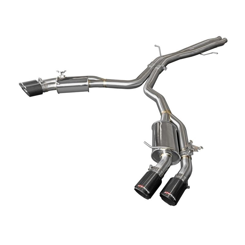 Quad 3-1/2" Diameter Carbon Fiber Exhaust Tips:Finishing off this exhaust system are quad 3-1/2" diameter carbon fiber 304 stainless steel clamp-on exhaust tips. The tips features an aFe POWER logo for a unique style.