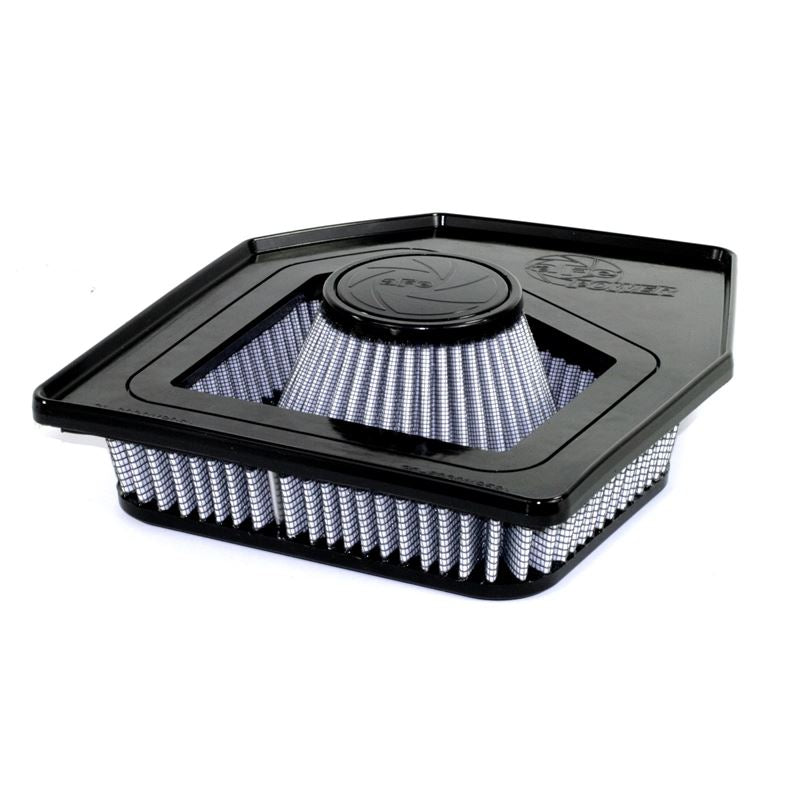 Magnum Flow Pro Dry S Gray Air Filter (31-80201) by aFe. Constructed with 100% polyurethane on all sides, "oil free" OE replacement performance filter will outflow the stock filter by up to 14% for improved horsepower and torque. The PRO DRY S air filter uses three layers of progressively finer mesh cotton gauze media to provide maximum airflow for best performance results. Washable and reusable for multiple cleaning cycles, the tall, open, evenly spaced pleats provide excellent dust holding capacity for a longer service cycle between cleanings. An integrated urethane bump seal insures tight, no leak seal over the life of the filter.