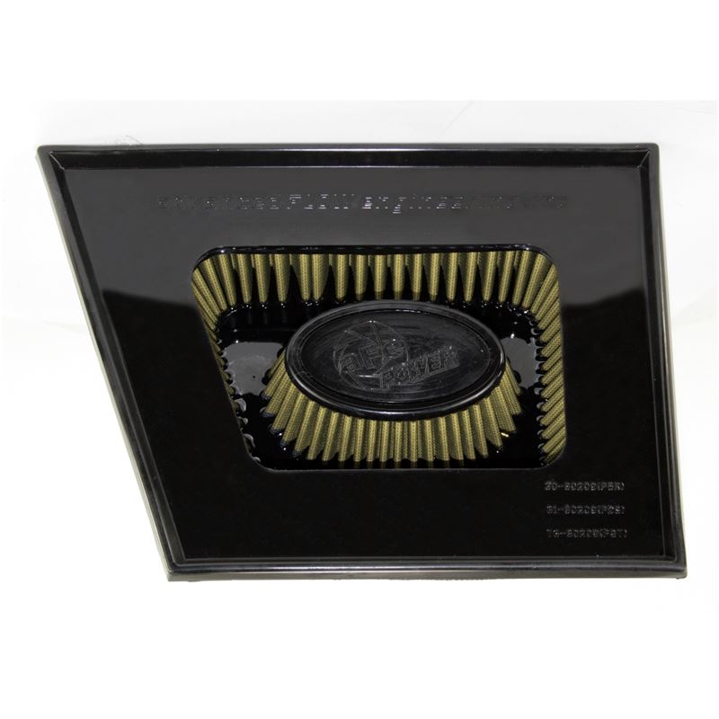 Magnum Flow Pro Guard 7 Custom Tan Air Filter (73-80209) by aFe. Constructed with 100% polyurethane on all four sides, this high-flow, oiled OE replacement performance filter will outflow the stock paper filter by up to 68% for improved horsepower and torque. The Pro-GUARD 7 air filter uses five layers of progressively finer mesh cotton with two layers of synthetic gauze media to provide maximum protection with the highest cumulative filtration efficiency for severe duty environments. Washable and reusable for multiple cleaning cycles, the tall, open, evenly spaced pleats provide excellent dust holding capacity for a longer service cycle between cleanings. An integrated urethane bump seal insures tight, no leak seal over the life of the filter.
