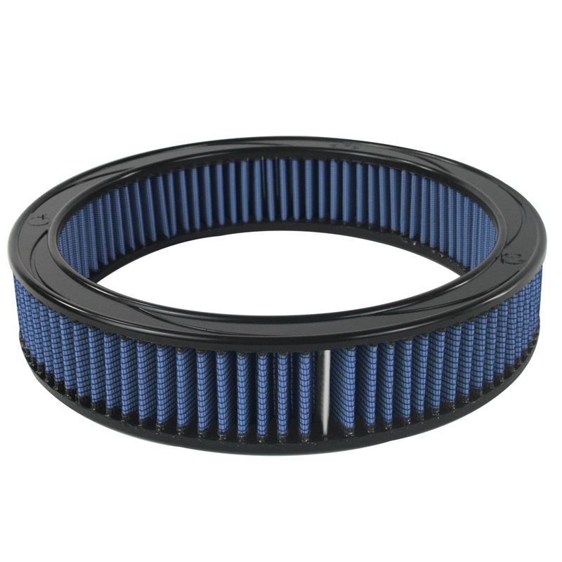 Magnum Flow Pro 5R Round Blue Air Filter (10-10016) by aFe. Constructed with 100% polyurethane on top and bottom, this high flow, oiled OE replacement performance filter will outflow stock paper filter for improved horsepower and torque. Five layers of progressively finer mesh cotton gauze media provide maximum airflow for best performance results. Washable and reusable for multiple cleaning cycles, the tall open evenly spaced pleats provide excellent dust holding capacity for longer service cycle between cleanings. Integrated urethane bump seal insures tight, no leak seal over the life of the filter.