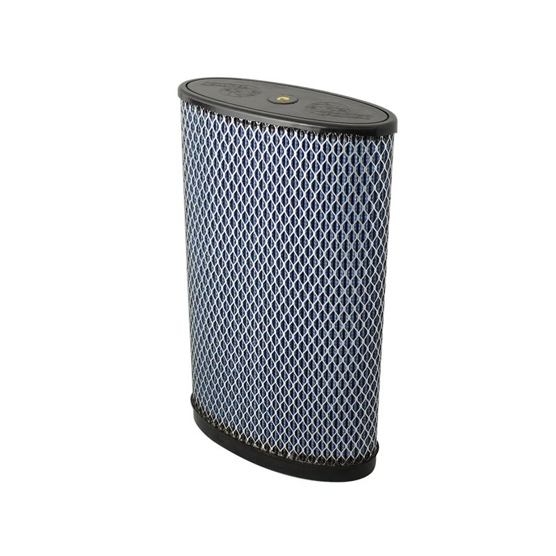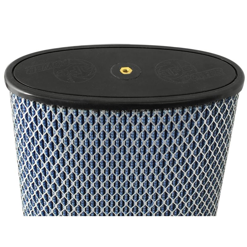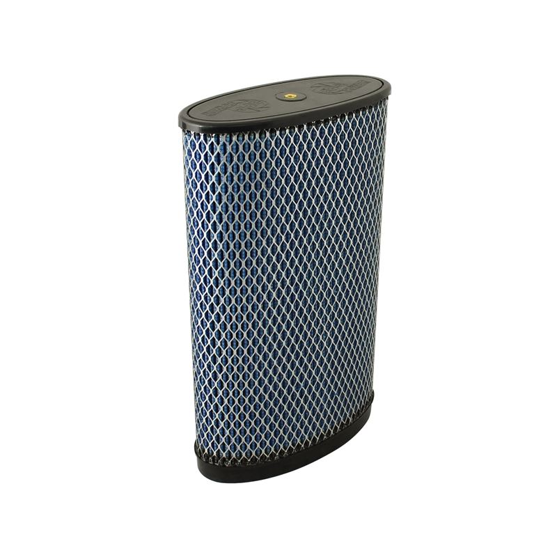 Magnum Flow Pro 5R Round Blue Air Filter (10-10106) by aFe. Constructed with 100% polyurethane on top and bottom, this high flow, oiled OE replacement performance filter will outflow stock paper filter for improved horsepower and torque. Five layers of progressively finer mesh cotton gauze media provide maximum airflow for best performance results. Washable and reusable for multiple cleaning cycles, the tall open evenly spaced pleats provide excellent dust holding capacity for longer service cycle between cleanings. Integrated urethane bump seal insures tight, no leak seal over the life of the filter.