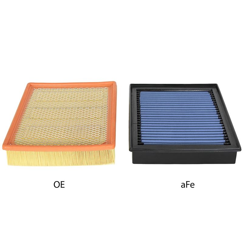 Magnum Flow Pro 5R Panel Blue Air Filter (30-10004) by aFe. Constructed with 100% polyurethane on all four sides, this high-flow, oiled OE replacement performance filter will outflow the stock paper filter for improved horsepower and torque. The Pro 5R air filter uses five layers of progressively finer mesh cotton gauze media to provide maximum airflow for best performance results. Washable and reusable for multiple cleaning cycles, the tall, open, evenly spaced pleats provide excellent dust holding capacity for a longer service cycle between cleanings. An integrated urethane bump seal insures tight, no leak seal over the life of the filter.