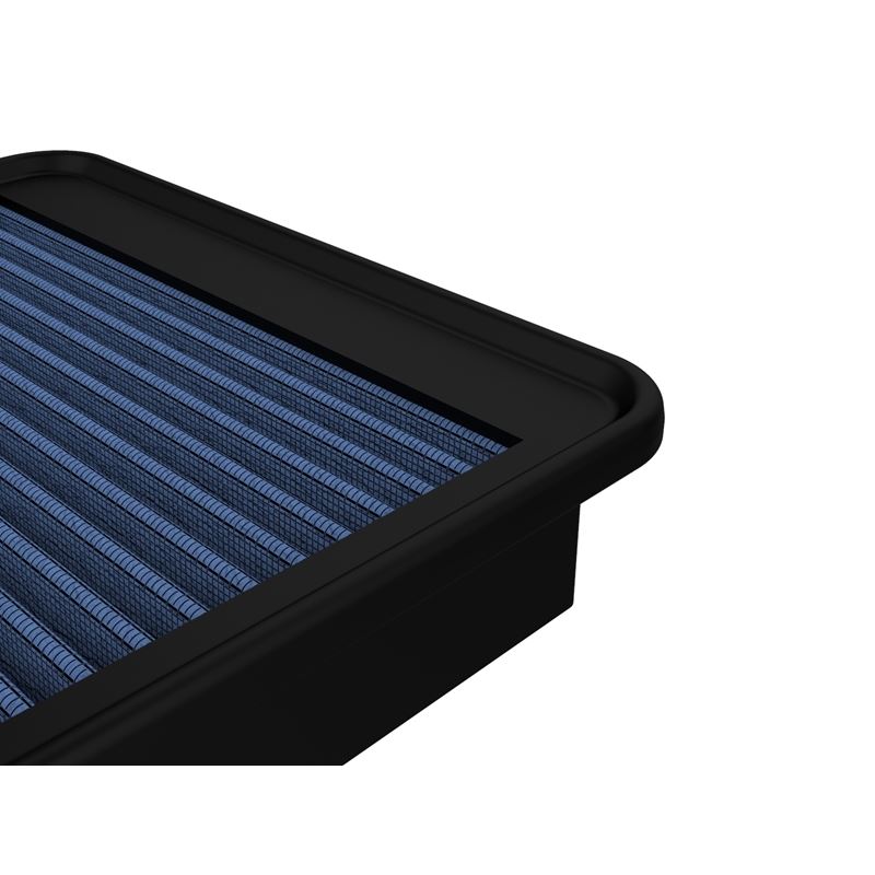 Magnum Flow Pro 5R Panel Blue Air Filter (30-10027) by aFe. Constructed with 100% polyurethane on all four sides, this high-flow, oiled OE replacement performance filter will outflow the stock paper filter for improved horsepower and torque. The Pro 5R air filter uses five layers of progressively finer mesh cotton gauze media to provide maximum airflow for best performance results. Washable and reusable for multiple cleaning cycles, the tall, open, evenly spaced pleats provide excellent dust holding capacity for a longer service cycle between cleanings. An integrated urethane bump seal insures tight, no leak seal over the life of the filter.
