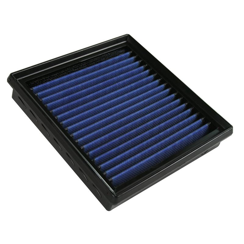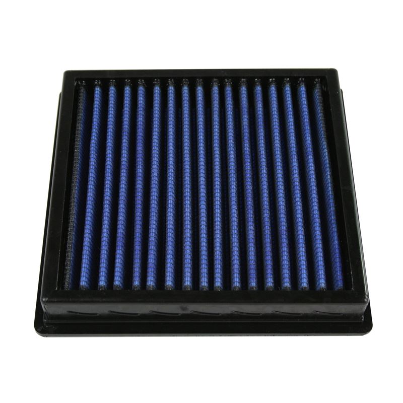 Magnum Flow Pro 5R Panel Blue Air Filter (30-10032) by aFe. Constructed with 100% polyurethane on all four sides, this high-flow, oiled OE replacement performance filter will outflow the stock paper filter for improved horsepower and torque. The Pro 5R air filter uses five layers of progressively finer mesh cotton gauze media to provide maximum airflow for best performance results. Washable and reusable for multiple cleaning cycles, the tall, open, evenly spaced pleats provide excellent dust holding capacity for a longer service cycle between cleanings. An integrated urethane bump seal insures tight, no leak seal over the life of the filter.