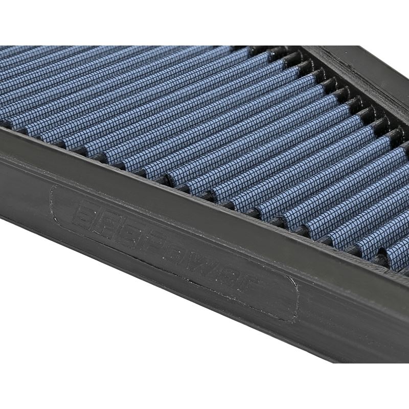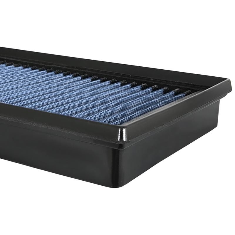 Magnum Flow Pro 5R Panel Blue Air Filter (30-10069) by aFe. Constructed with 100% polyurethane on all four sides, this high-flow, oiled OE replacement performance filter will outflow the stock paper filter for improved horsepower and torque. The Pro 5R air filter uses five layers of progressively finer mesh cotton gauze media to provide maximum airflow for best performance results. Washable and reusable for multiple cleaning cycles, the tall, open, evenly spaced pleats provide excellent dust holding capacity for a longer service cycle between cleanings. An integrated urethane bump seal insures tight, no leak seal over the life of the filter.