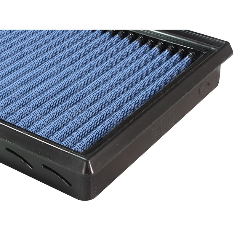 Magnum Flow Pro 5R Panel Blue Air Filter (30-10099) by aFe. Constructed with 100% polyurethane on all four sides, this high-flow, oiled OE replacement performance filter will outflow the stock paper filter for improved horsepower and torque. The Pro 5R air filter uses five layers of progressively finer mesh cotton gauze media to provide maximum airflow for best performance results. Washable and reusable for multiple cleaning cycles, the tall, open, evenly spaced pleats provide excellent dust holding capacity for a longer service cycle between cleanings. An integrated urethane bump seal insures tight, no leak seal over the life of the filter.