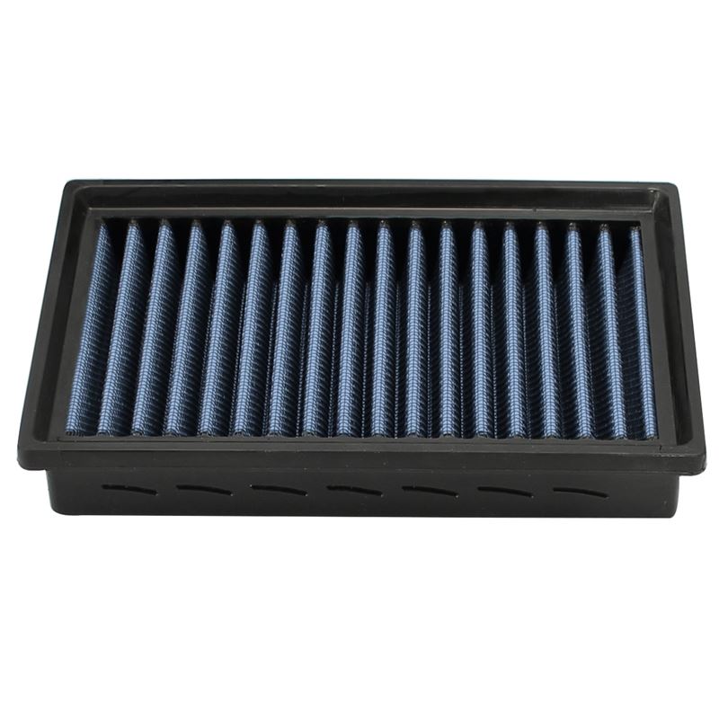 Magnum Flow Pro 5R Panel Blue Air Filter (30-10159) by aFe. Constructed with 100% polyurethane on all four sides, this high-flow, oiled OE replacement performance filter will outflow the stock paper filter for improved horsepower and torque. The Pro 5R air filter uses five layers of progressively finer mesh cotton gauze media to provide maximum airflow for best performance results. Washable and reusable for multiple cleaning cycles, the tall, open, evenly spaced pleats provide excellent dust holding capacity for a longer service cycle between cleanings. An integrated urethane bump seal insures tight, no leak seal over the life of the filter.