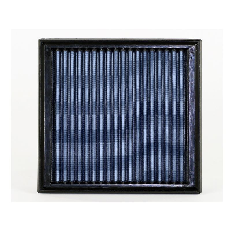 Magnum Flow Pro 5R Panel Blue Air Filter (30-10203) by aFe. Constructed with 100% polyurethane on all four sides, this high-flow, oiled OE replacement performance filter will outflow the stock paper filter for improved horsepower and torque. The Pro 5R air filter uses five layers of progressively finer mesh cotton gauze media to provide maximum airflow for best performance results. Washable and reusable for multiple cleaning cycles, the tall, open, evenly spaced pleats provide excellent dust holding capacity for a longer service cycle between cleanings. An integrated urethane bump seal insures tight, no leak seal over the life of the filter.