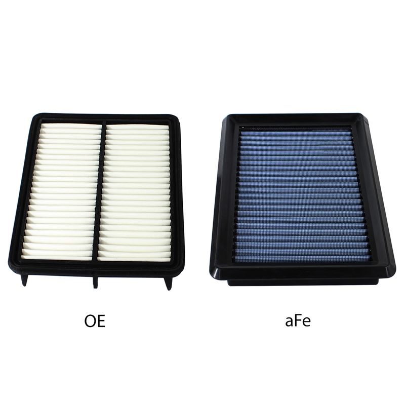 Magnum Flow Pro 5R Panel Blue Air Filter (30-10251) by aFe. Constructed with 100% polyurethane on all four sides, this high-flow, oiled OE replacement performance filter will outflow the stock paper filter for improved horsepower and torque. The Pro 5R air filter uses five layers of progressively finer mesh cotton gauze media to provide maximum airflow for best performance results. Washable and reusable for multiple cleaning cycles, the tall, open, evenly spaced pleats provide excellent dust holding capacity for a longer service cycle between cleanings. An integrated urethane bump seal insures tight, no leak seal over the life of the filter.