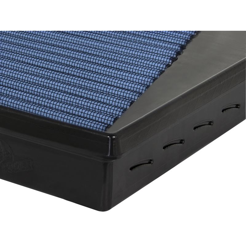 Magnum Flow Pro 5R Blue Air Filter (30-10261) by aFe. This high flow Pro 5R air filters are constructed with 100% polyurethane on all sides and will out flow the stock paper filters for improved performance. Five layers of progressively finer cotton media provides maximum air flow. Washable and reusable for multiple cleaning cycles, the tall, open and evenly spaced filter pleats provide excellent dust holding capacity for longer service cycle between cleanings. An integrated urethane bump seal insures a tight, leak-free seal over the life of the filter. The aFe filter system increased air flow over the factory air filter set increasing horsepower, torque and improving throttle response.