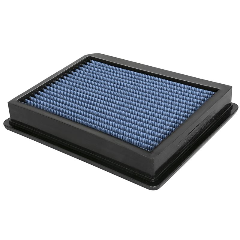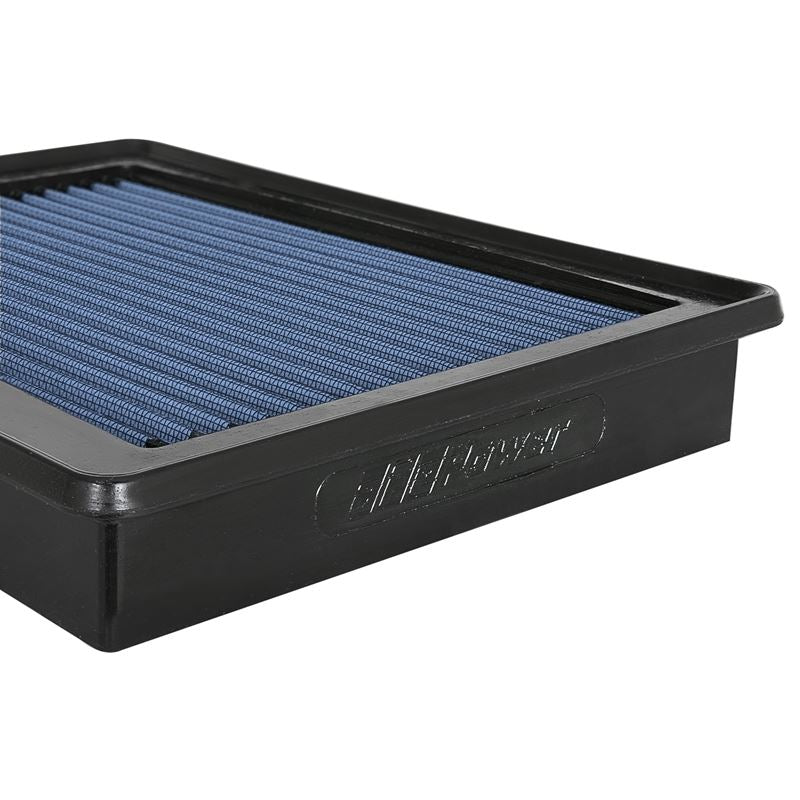 Magnum Flow Pro 5R Panel Blue Air Filter by aFe. Constructed with 100% polyurethane on all four sides, this high-flow, oiled OE replacement performance filter will outflow the stock paper filter for improved horsepower and torque. The Pro 5R air filter uses five layers of progressively finer mesh cotton gauze media to provide maximum airflow for best performance results. Washable and reusable for multiple cleaning cycles, the tall, open, evenly spaced pleats provide excellent dust holding capacity for a longer service cycle between cleanings. An integrated urethane bump seal insures tight, no leak seal over the life of the filter.