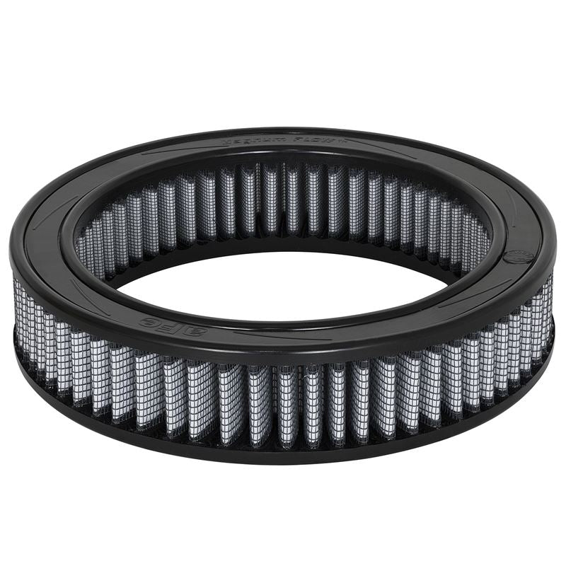 Magnum Flow Pro Dry S Round Gray Air Filter (11-10038) by aFe. Constructed with 100% polyurethane on top and bottom, this high flow "oil-free" OE replacement performance filter will outflow stock paper filter for improved horsepower and torque. Three layers of progressively finer mesh synthetic media provide maximum convenience and easy maintenance. Washable and reusable for multiple cleaning cycles, the tall open evenly spaced pleats provide excellent dust holding capacity for longer service cycle between cleanings. Integrated urethane bump seal with a built in metal support ring insures a tight, no leak seal over the life of the filter.