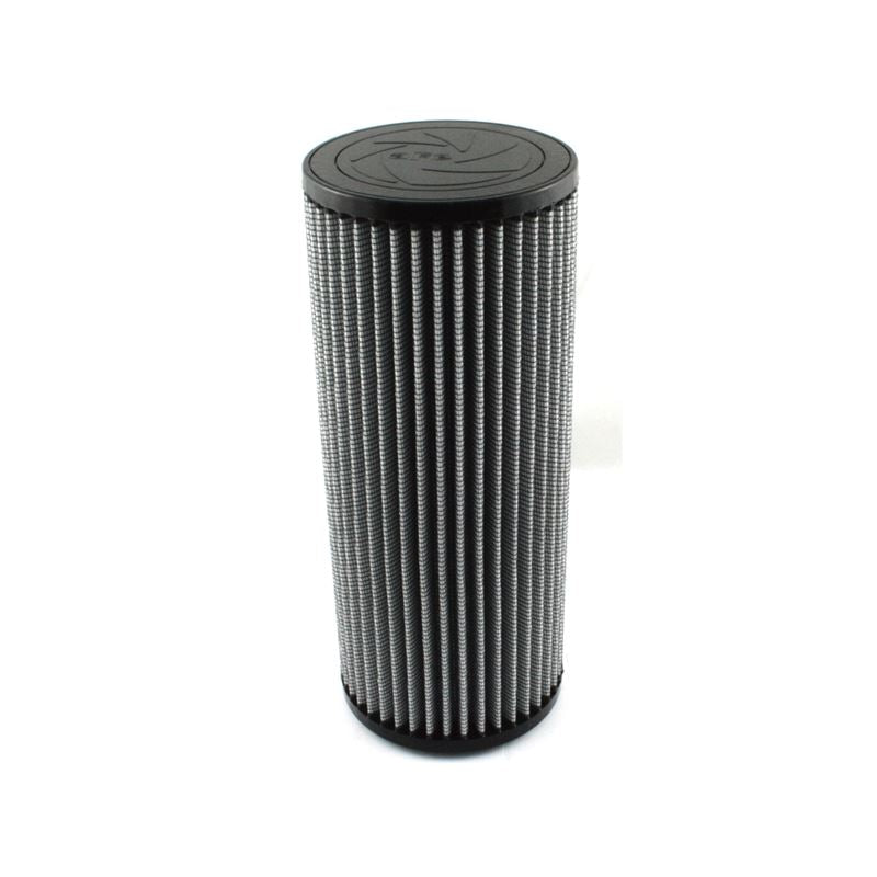 Magnum Flow Pro Dry S Round Straight Gray Air Filter (11-10058) by aFe. Constructed with 100% polyurethane on top and bottom, this high flow oil-free? OE replacement performance filter will outflow stock paper filter for improved horsepower and torque. Two layers of progressively finer mesh synthetic media provide maximum convenience and easy maintenance. Washable and reusable for multiple cleaning cycles, the tall open evenly spaced pleats provide excellent dust holding capacity for longer service cycle between cleanings. Integrated urethane bump seal insures tight, no leak seal over the life of the filter.