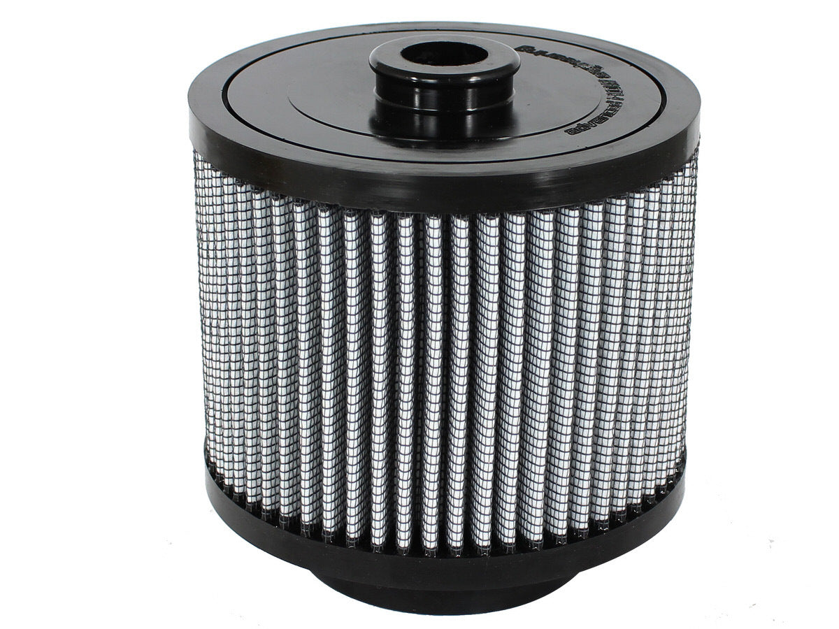 Magnum Flow Pro Dry S Round Straight Gray Air Filter (11-10125) by aFe. Constructed with 100% polyurethane on top and bottom, this high flow oil-free? OE replacement performance filter will outflow stock paper filter for improved horsepower and torque. Two layers of progressively finer mesh synthetic media provide maximum convenience and easy maintenance. Washable and reusable for multiple cleaning cycles, the tall open evenly spaced pleats provide excellent dust holding capacity for longer service cycle between cleanings. Integrated urethane bump seal insures tight, no leak seal over the life of the filter.