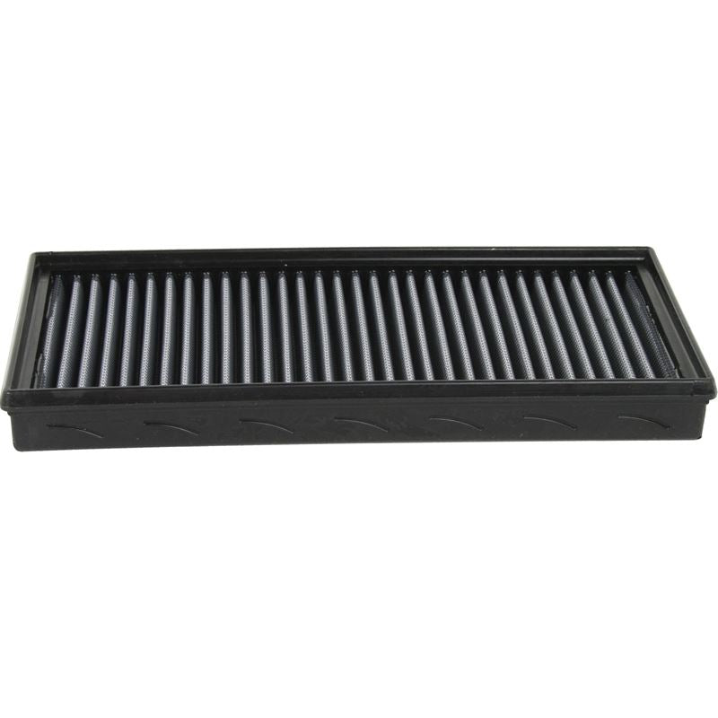 Magnum Flow Pro Dry S Panel Gray Air Filter (31-10024) by aFe. Constructed with 100% polyurethane on all sides, this high-flow, oiled OE replacement performance filter will outflow the stock filter for improved horsepower and torque. The PRO DRY S performance air filter uses three layers of progressively finer mesh media to provide maximum airflow for best performance results. Washable and reusable for multiple cleaning cycles, the tall, open, evenly spaced pleats provide excellent dust holding capacity for a longer service cycle between cleanings. An integrated urethane bump seal insures tight, no leak seal over the life of the filter.