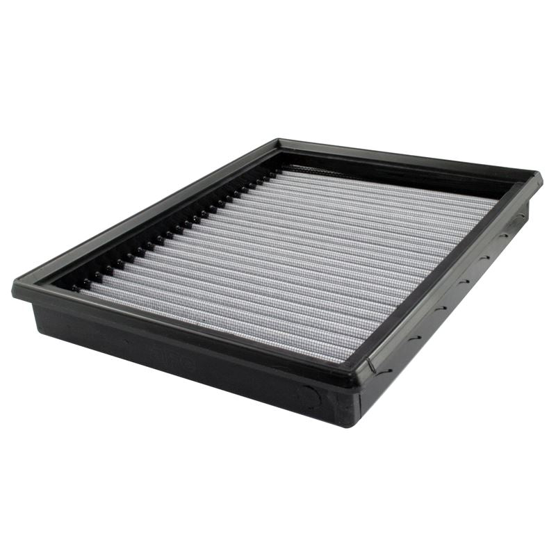 Magnum Flow Pro Dry S Panel Gray Air Filter (31-10030) by aFe. Constructed with 100% polyurethane on all sides, this high-flow, oiled OE replacement performance filter will outflow the stock filter for improved horsepower and torque. The PRO DRY S performance air filter uses three layers of progressively finer mesh media to provide maximum airflow for best performance results. Washable and reusable for multiple cleaning cycles, the tall, open, evenly spaced pleats provide excellent dust holding capacity for a longer service cycle between cleanings. An integrated urethane bump seal insures tight, no leak seal over the life of the filter.