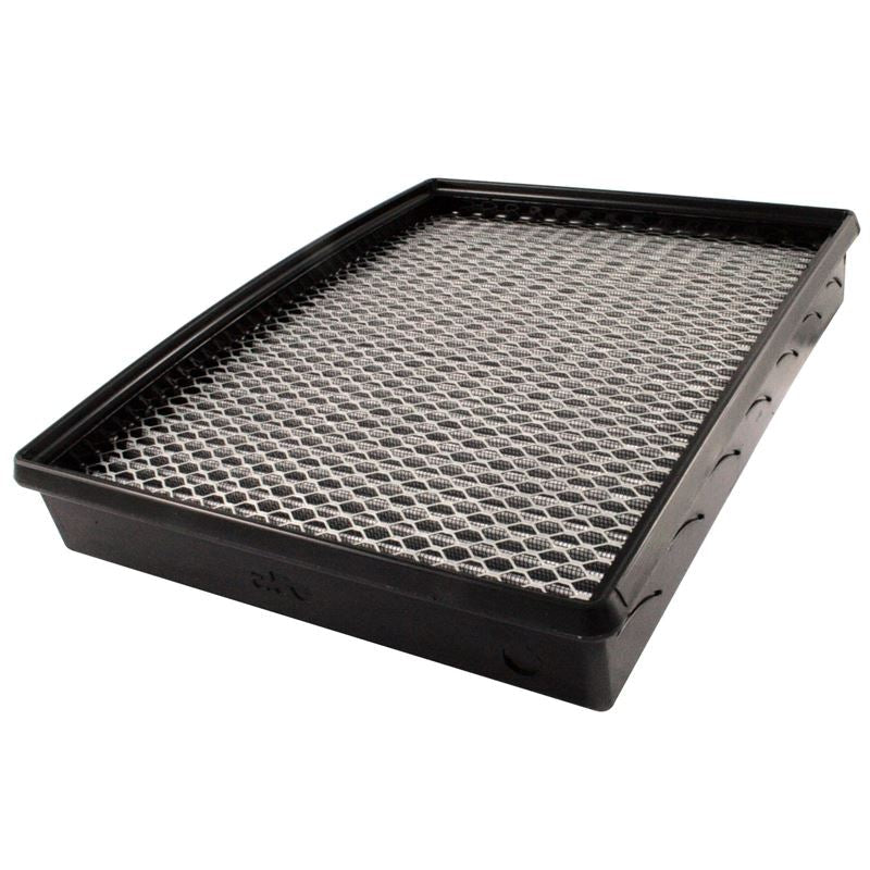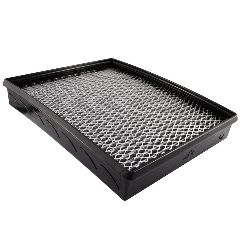 Magnum Flow Pro Dry S Panel Gray Air Filter (31-10062) by aFe. Constructed with 100% polyurethane on all sides, this high-flow, oiled OE replacement performance filter will outflow the stock filter for improved horsepower and torque. The PRO DRY S performance air filter uses three layers of progressively finer mesh media to provide maximum airflow for best performance results. Washable and reusable for multiple cleaning cycles, the tall, open, evenly spaced pleats provide excellent dust holding capacity for a longer service cycle between cleanings. An integrated urethane bump seal insures tight, no leak seal over the life of the filter.